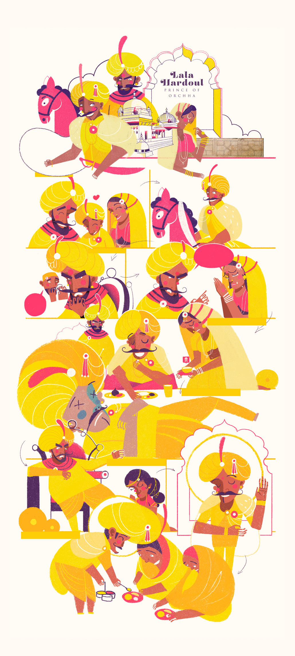 Behind the ruins of a melancholic yellow palace which now houses a bazaar, I heard the story of Lala Hardaul, a local prince who is worshipped in a small temple and is addressed as God.